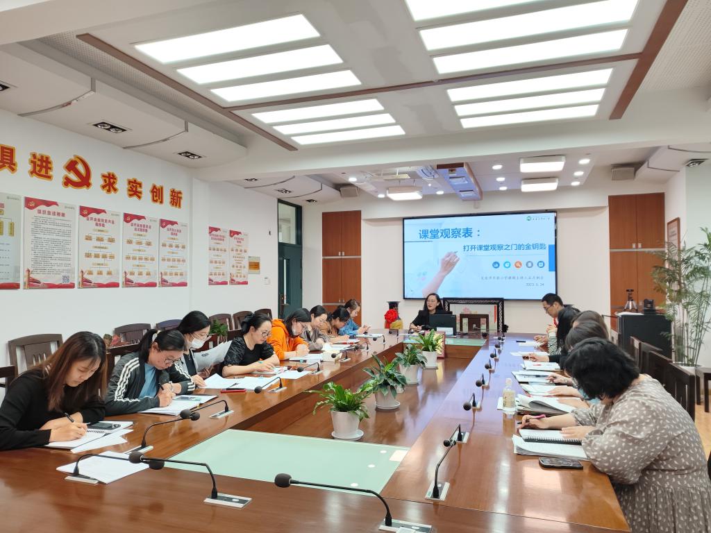 教科室陆晓程主任做了《课堂观察表:打开课堂观察之门的金钥匙》专题报告,围绕“该怎么设计课堂观察量表?设计好了又该怎么使用课堂观察量表?如何结合观察量表进行评价?”展开交流,重点引领课题组成员了解观察量表设计流程。