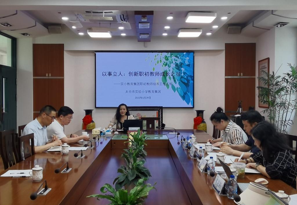 陆晓程主任以《以事立人:创新职初教师成长之径》为题,从顶层设计、巧施策略、多方合力三个方面汇报了实小教育集团职初教师的师资情况、培养机制及工作成效。调研组充分肯定了实小教育集团在新教师培养方面的举措。