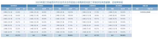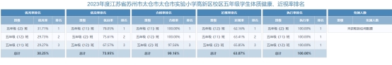 2023年度江苏省苏州市太仓市实验小学学生体质健康、近视率排名