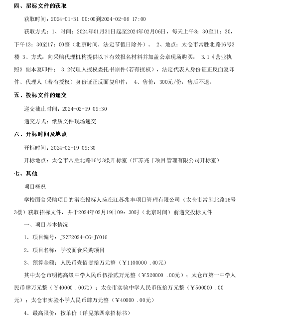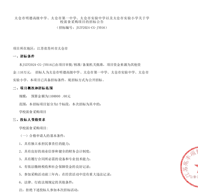 太仓市明德高级中学、太仓市第一中学、太仓市实验中学以及太仓市实验小学关于学校面食采购项目的招标公告