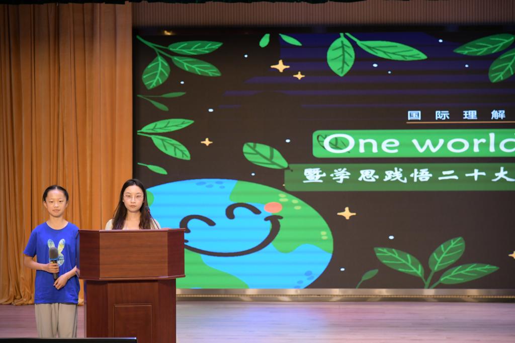 金奕炜老师和朱嘉懿同学聚焦国际理解教育项目,合作介绍了实小师生共同参与的世界地球日绿色环保行动。
