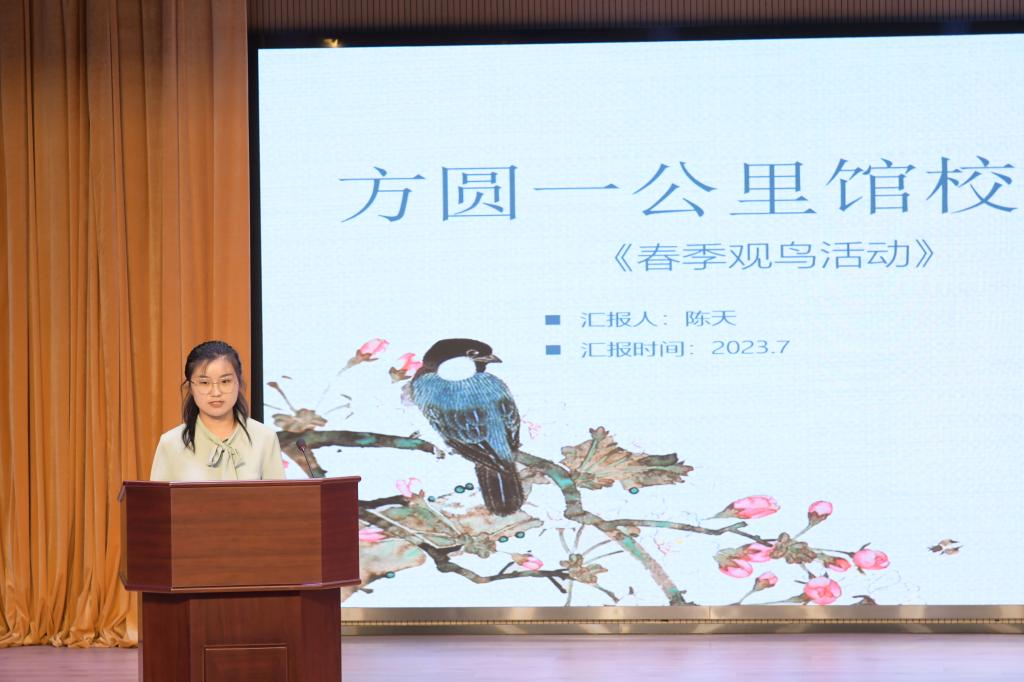 陈天老师从活动简介、活动过程、学生感受与收获、活动总结四个方面,介绍了馆校合作课程之一的春季观鸟活动。